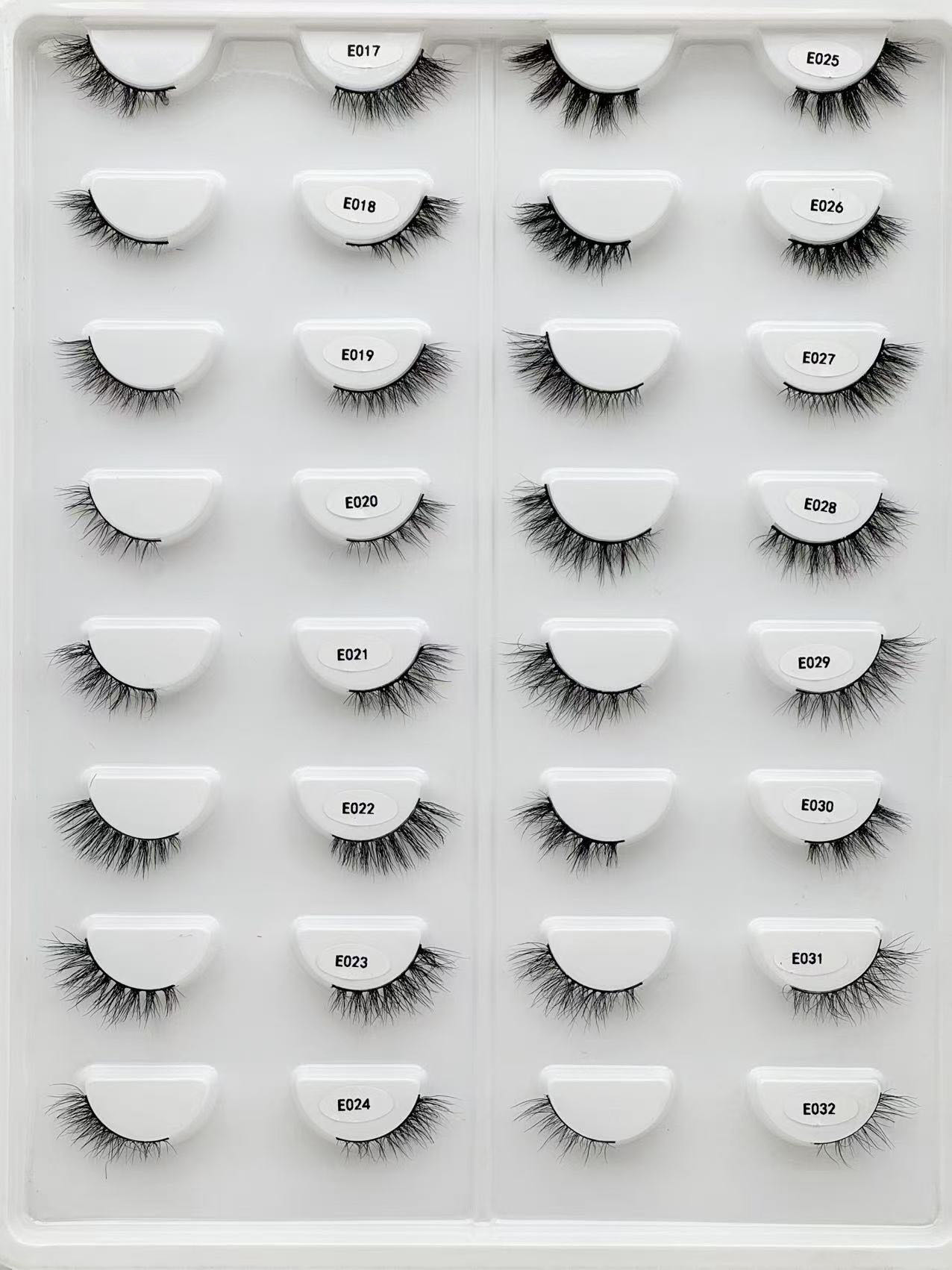 100% mink lashes, including 3D mink lashes and half eye lashes. The moq is 50pairs each style.