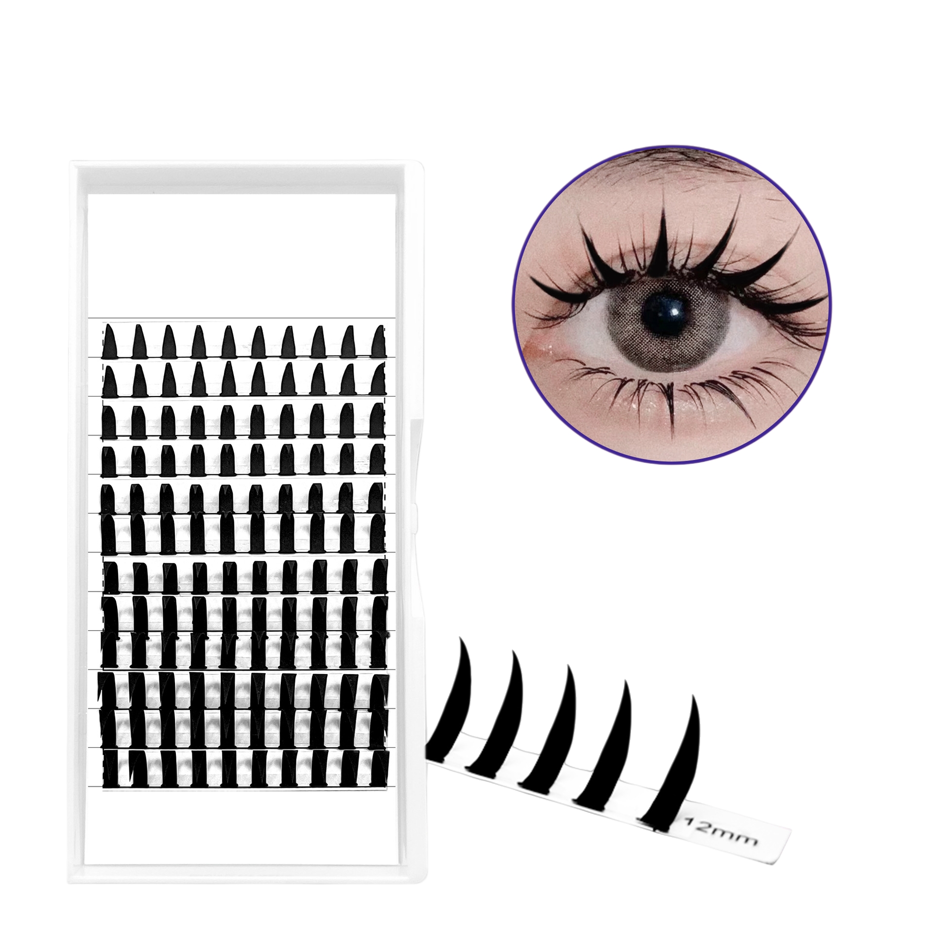 Made from premium PBT vegan fibers, these lashes feature unique spiky and wispy that perfectly capture the anime and cosplay aesthetic. Lightweight, soft, and long-lasting — ideal for clients seeking bold and artistic eye looks.